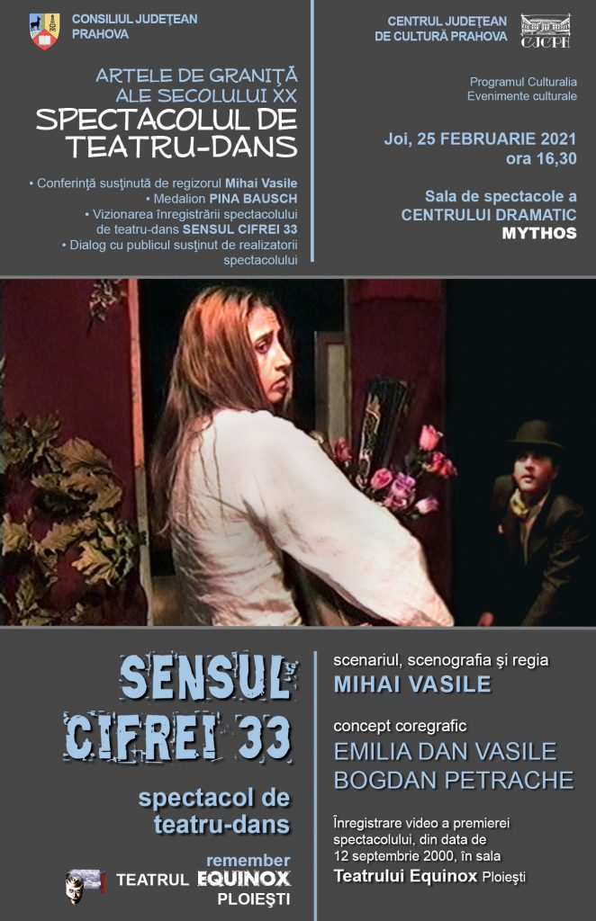 – Conferință susținută de regizorul Mihai Vasile – Medalion Pina Bausch – Vizionarea înregistrării spectacolului de teatru-dans „Sensul cifrei 33” – Dialog cu publicul susținut