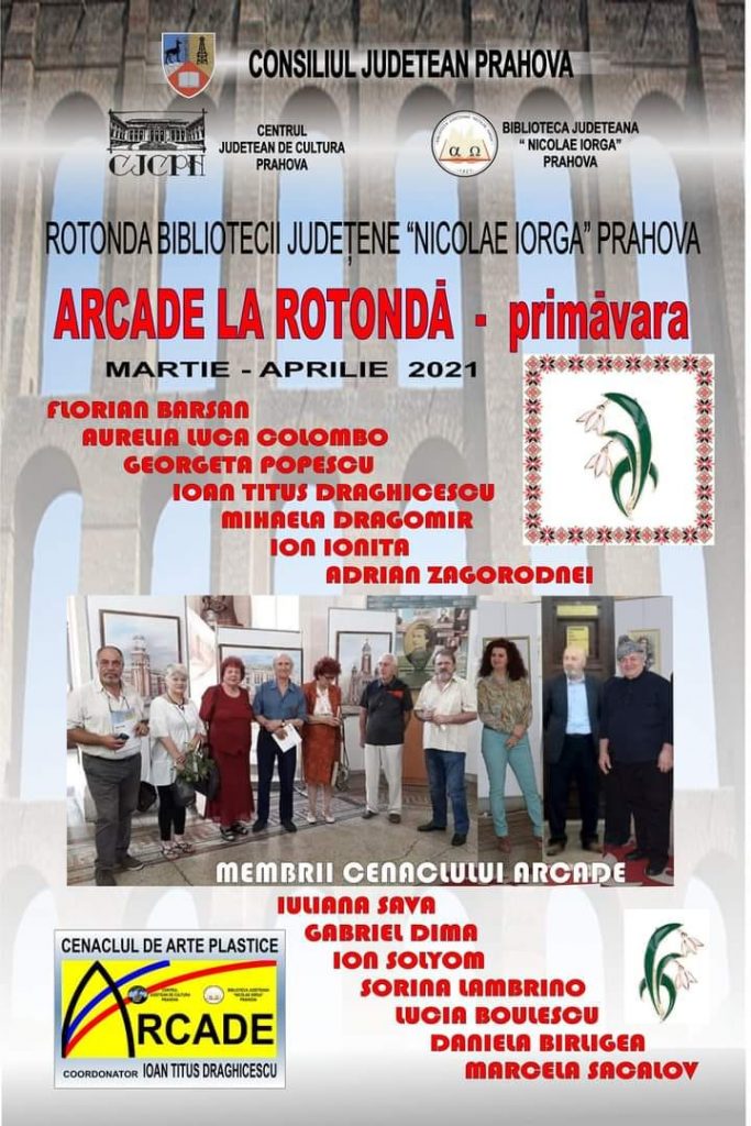 Expoziția de primăvară a membrii Cenaclului de Arte Plastice “ARCADE”, coordonator – Ioan Titus Drăghicescu, în Rotonda Bibliotecii Județene “Nicolae Iorga”